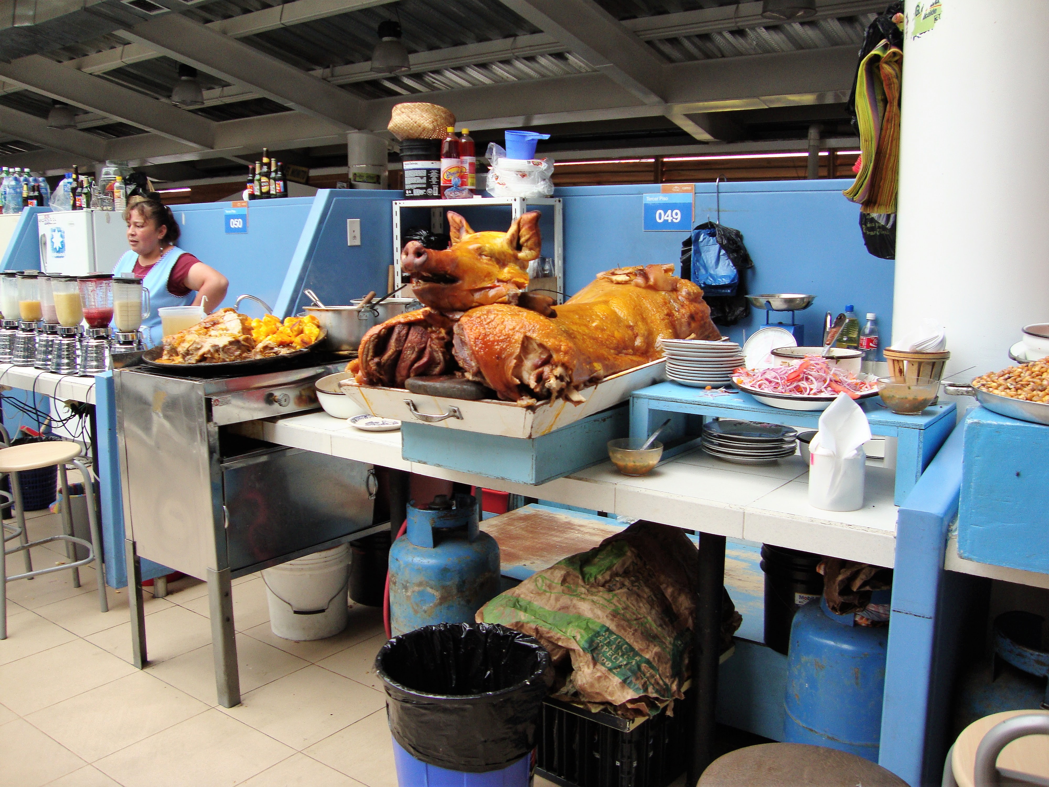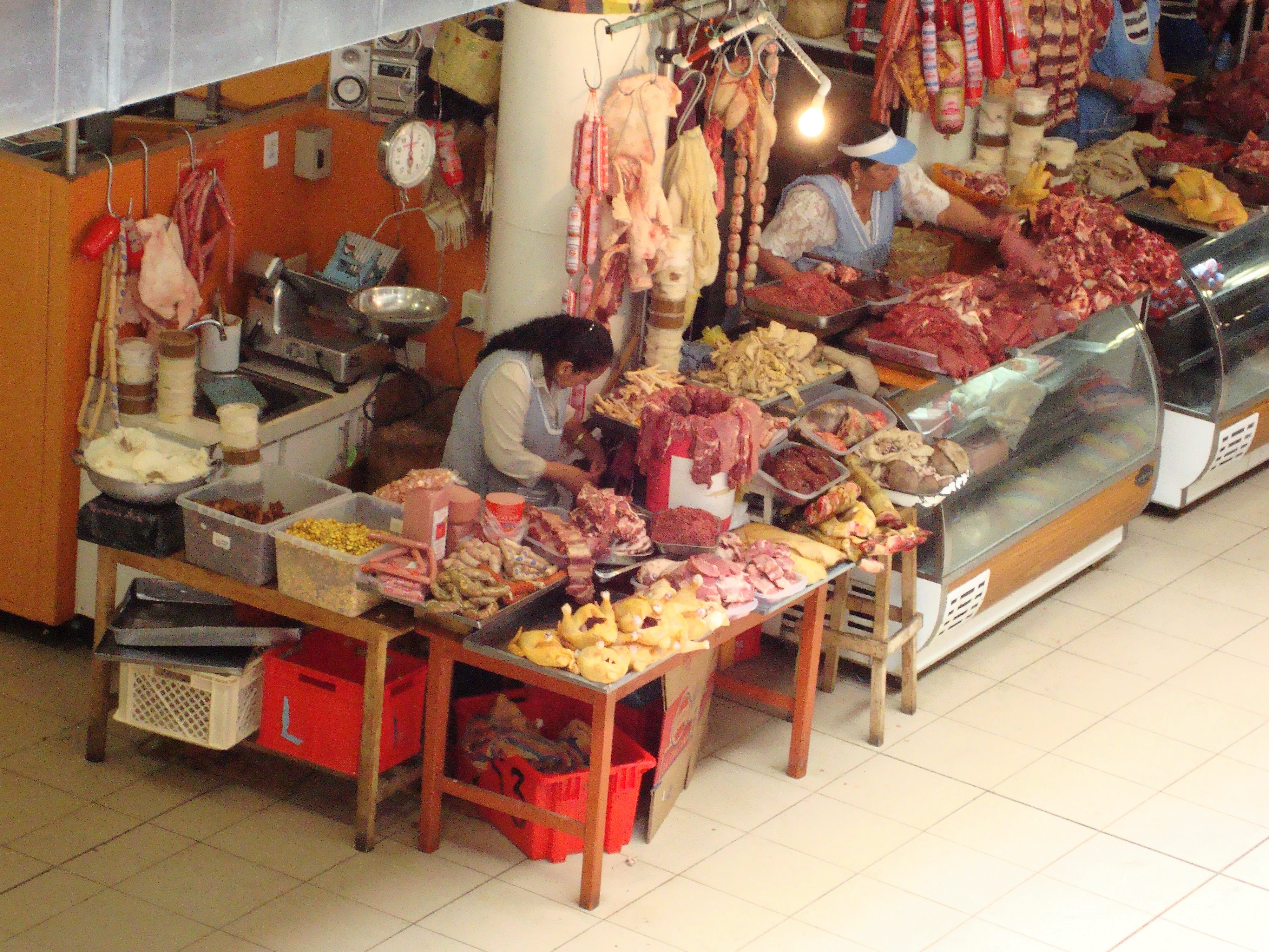 En el piso inferior están los puestos de venta de carne y los de comidas. El olor a carne cruda era nauseabundo para mí y por eso me limité a tomar fotos desde arriba.