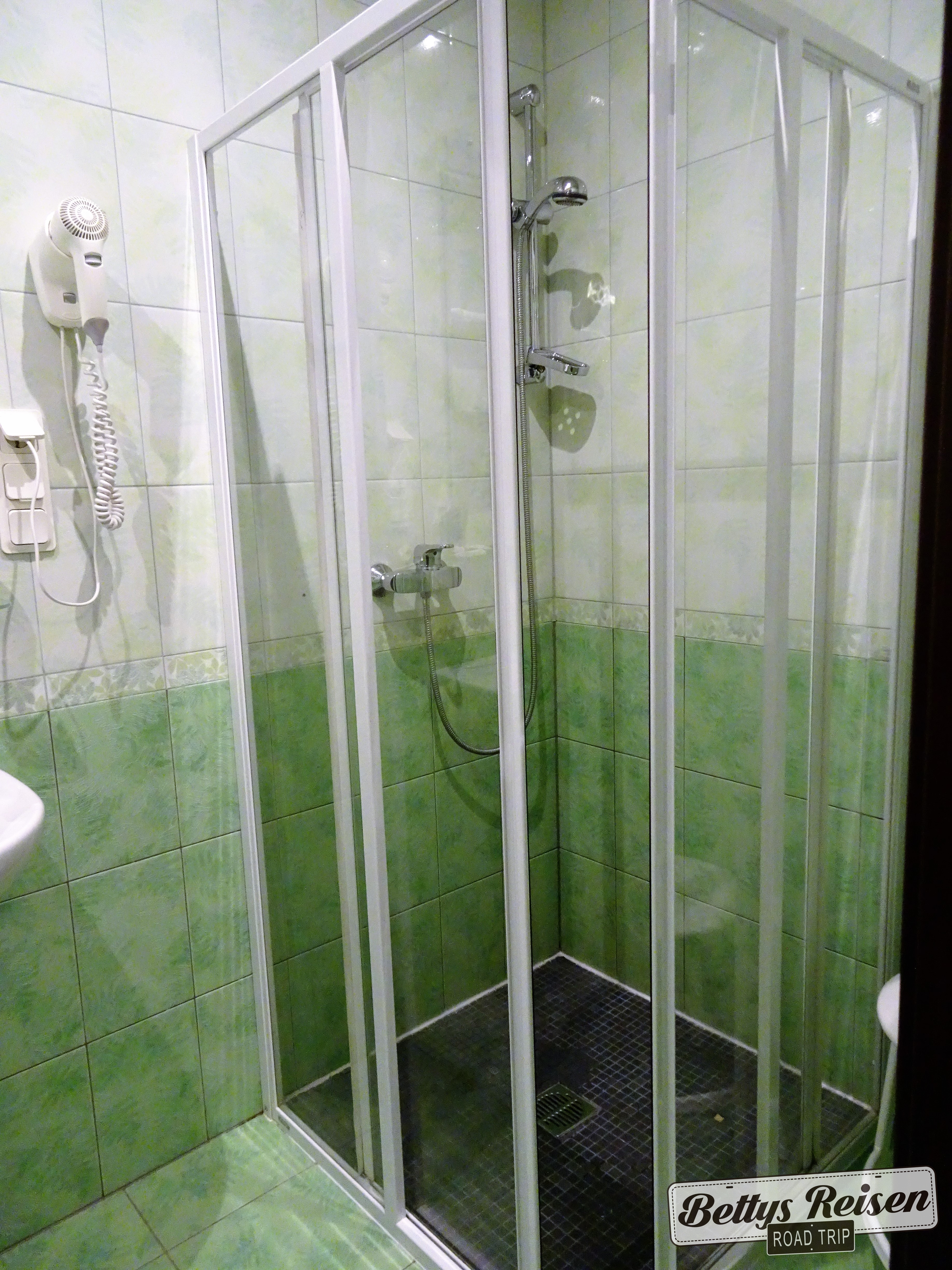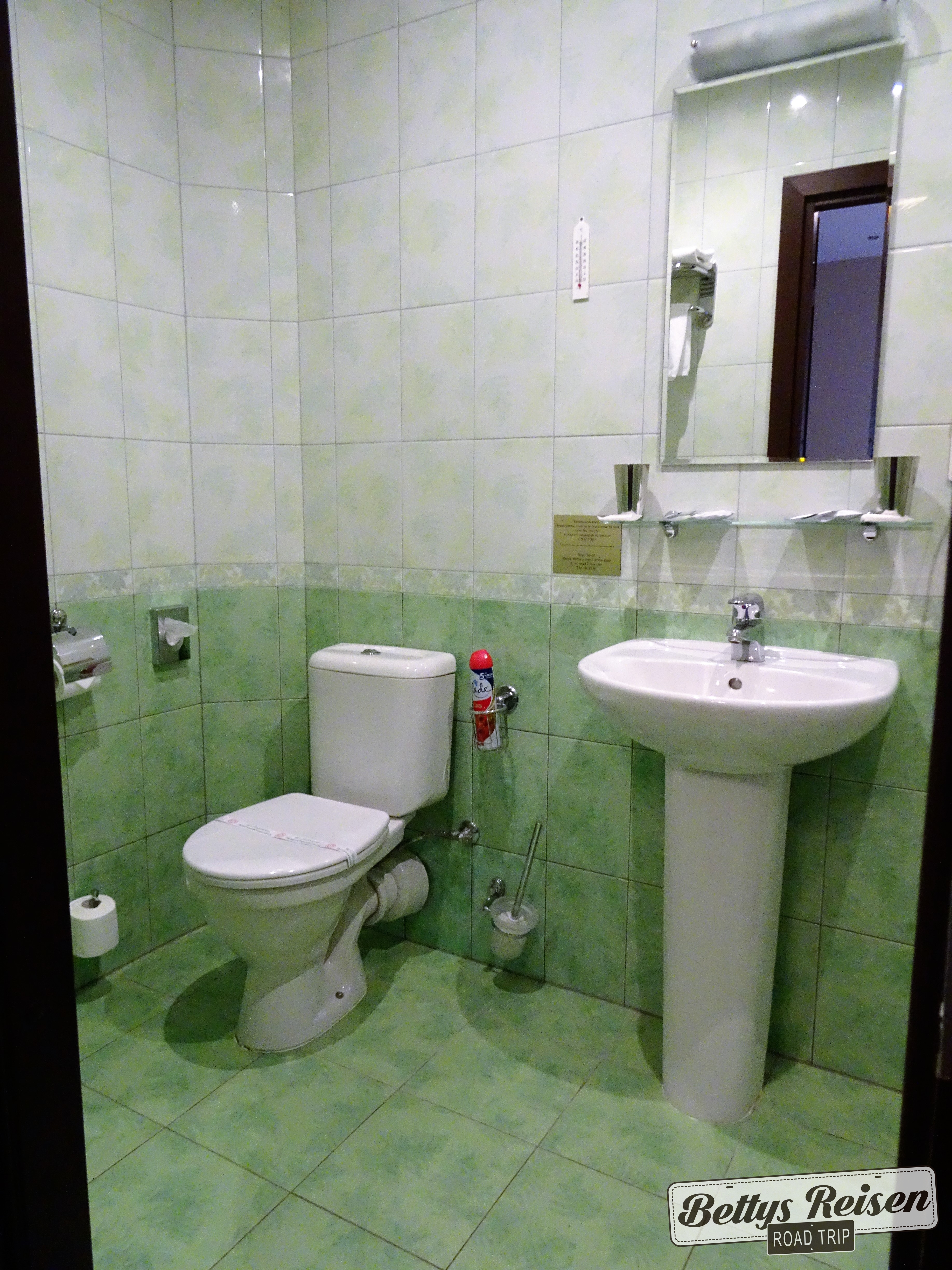 El baño parece detenido en el tiempo…. creo que su amplitud compensa la anticuada decoración.