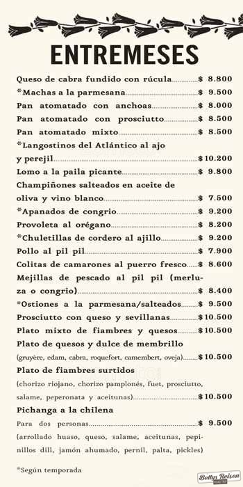 A los precios de las listas que están a continuación, hay que sumarle el 10% de propina.