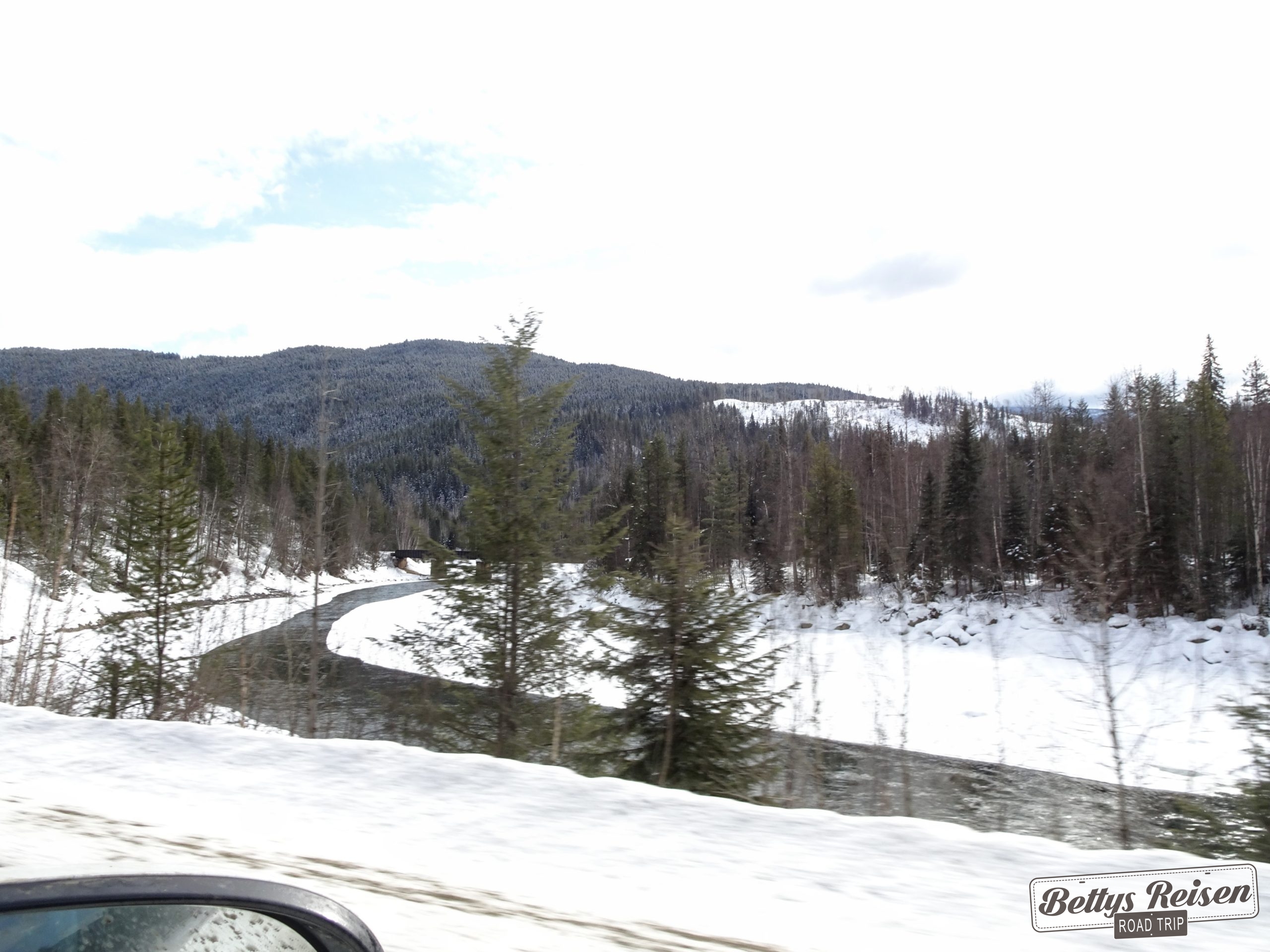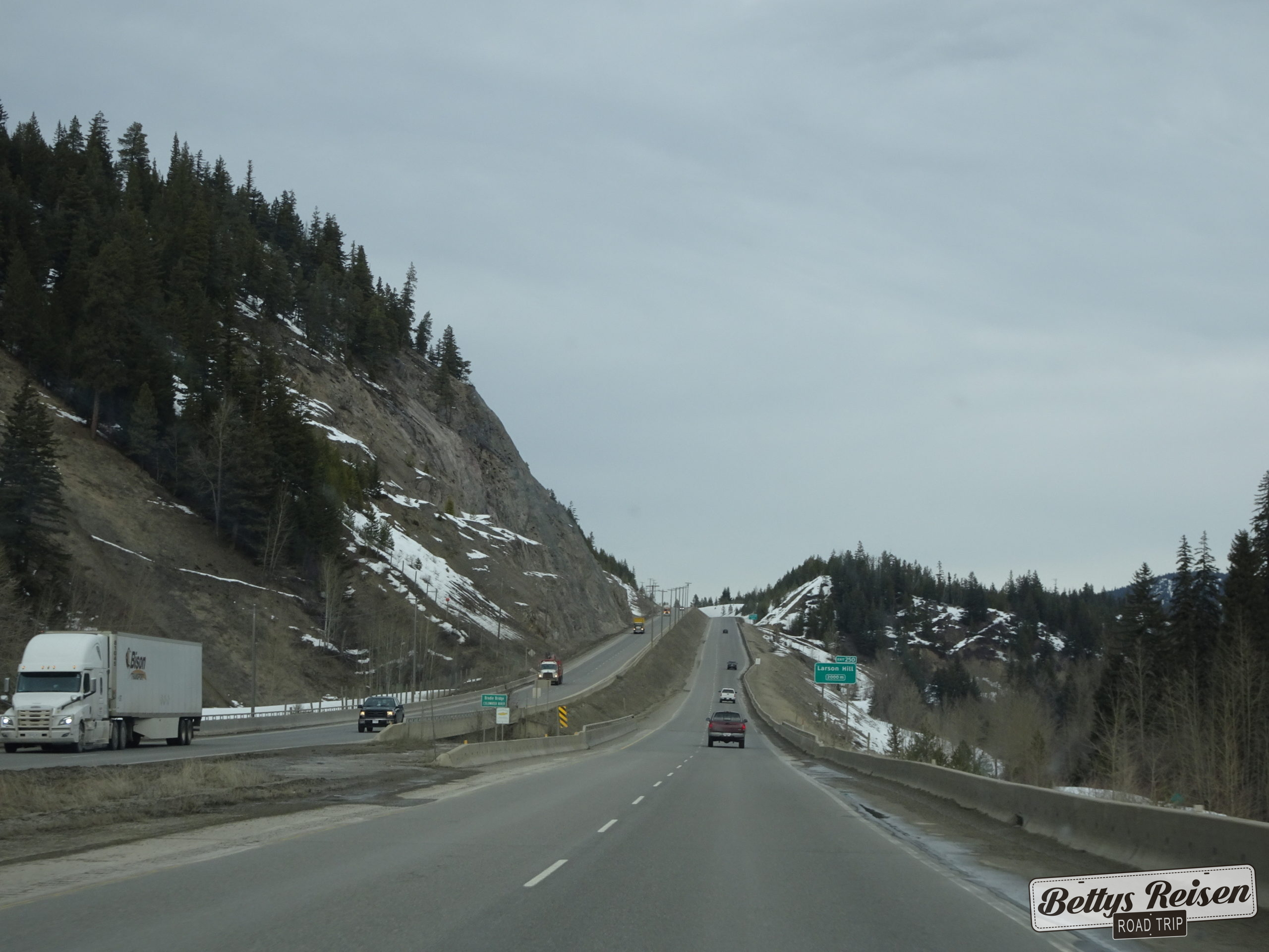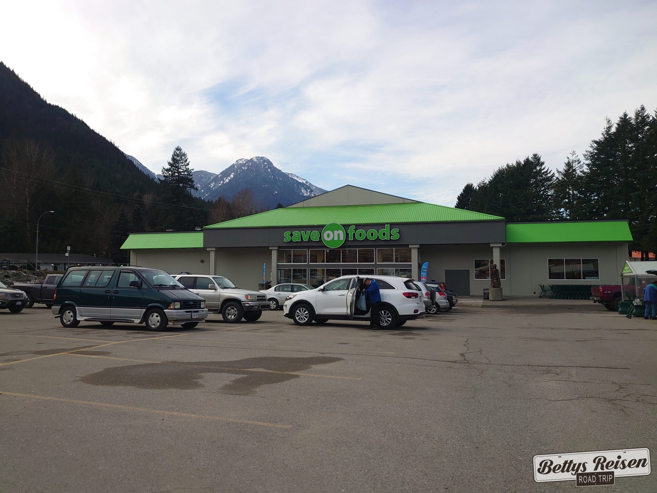 A pocos kms de Vancouver ya se empiezan a divisar las montañas, los paisajes no son wow pero se aprecian las costumbres del país y eso es valioso. Paramos en Hope para hacer la primer compra en un supermercado, los kms transcurren más rápido con alimentos y bebida a disposición😉
