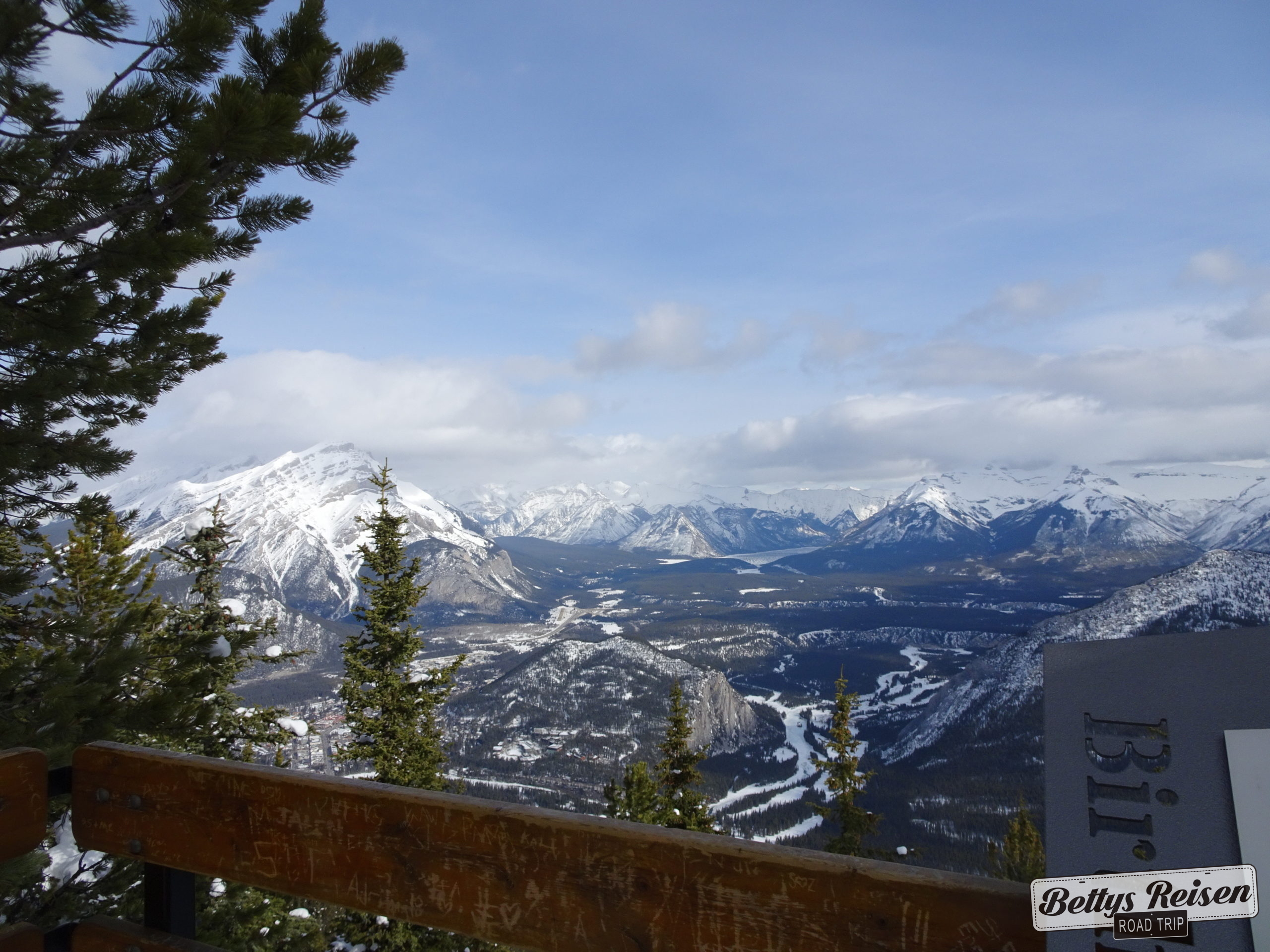 La primer actividad del día fue subir a la Banff Góndola, para apreciar los paisajes desde lo alto. Como toda subida en teleférico ya vas disfrutando a medida que te alejas de la base y arriba aprecias lo bueno, caminando por unas hermosas pasarelas y subiendo/bajando escaleras.