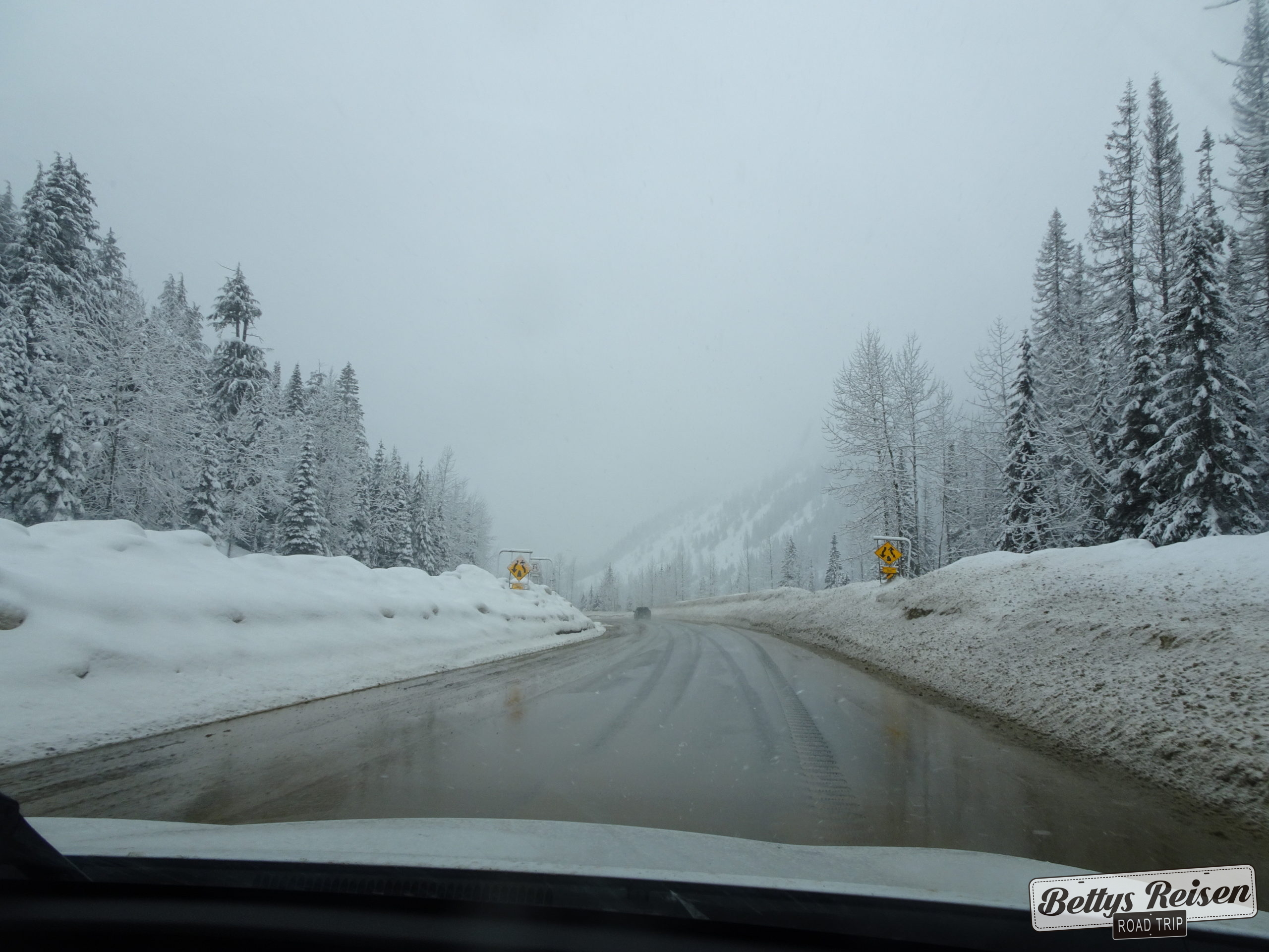 Llegó el momento de dejar Banff e ir retornando hacia Vancouver, el paisaje fue maravilloso atravesando parques nacionales mientras nevaba.