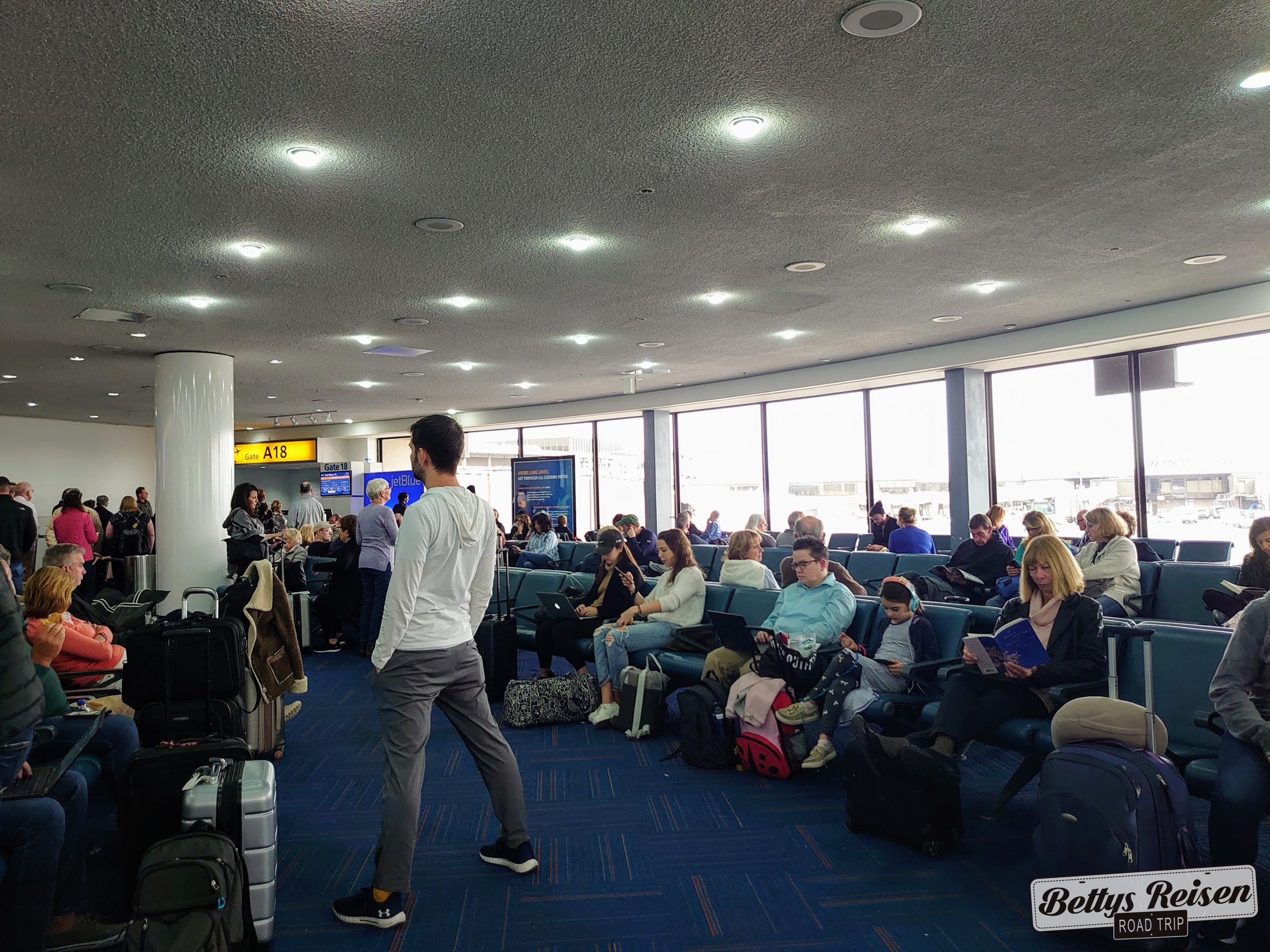 Nos levantamos a las 5 am, usamos el servicio gratuito del hotel hasta el aeropuerto, para volar de regreso a New York.