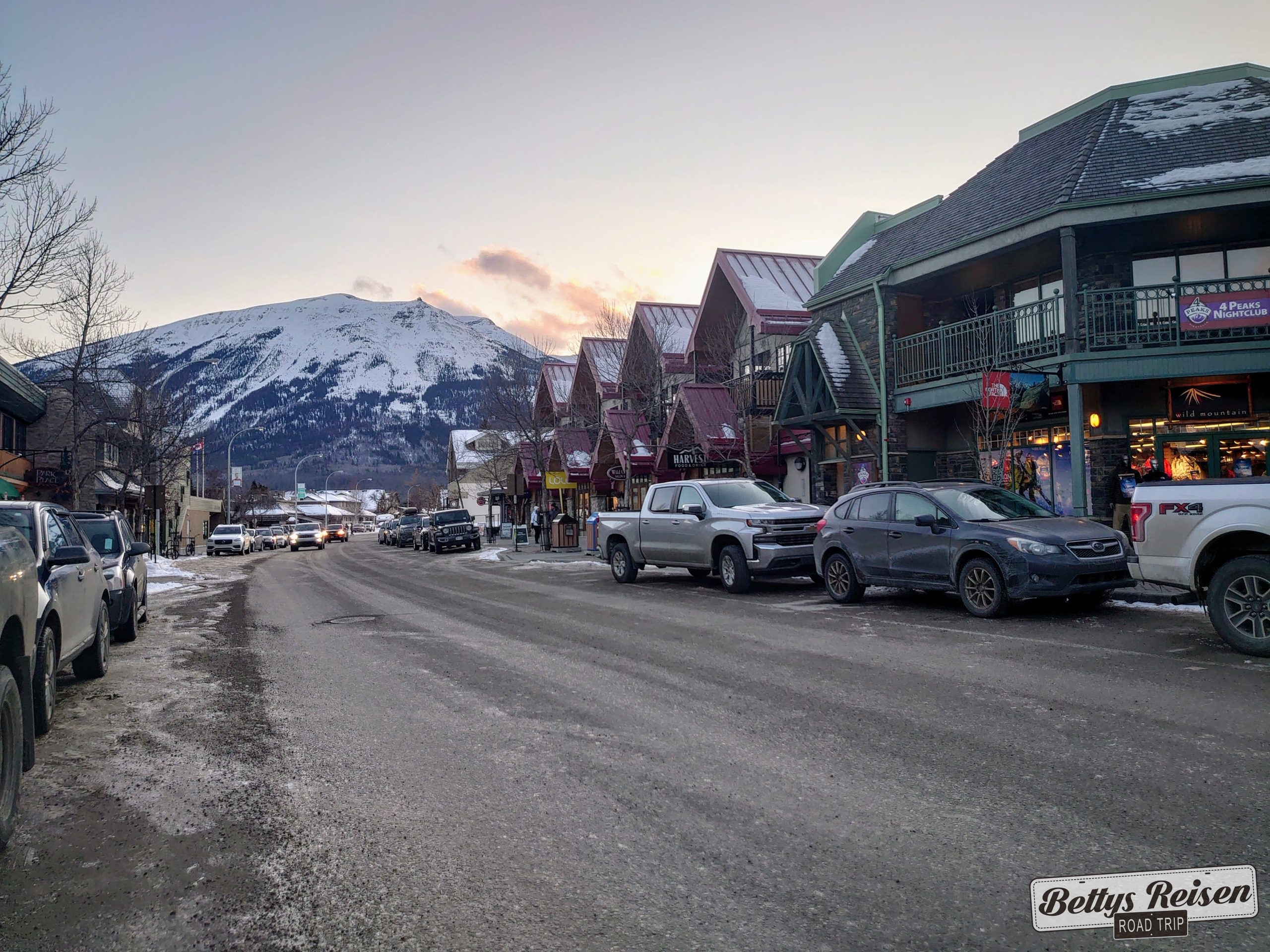 Luego fuimos por un camino secundario sin asfaltar hasta el centro de skí de Lake Louise y cerramos el día caminando por el centro de Banff.