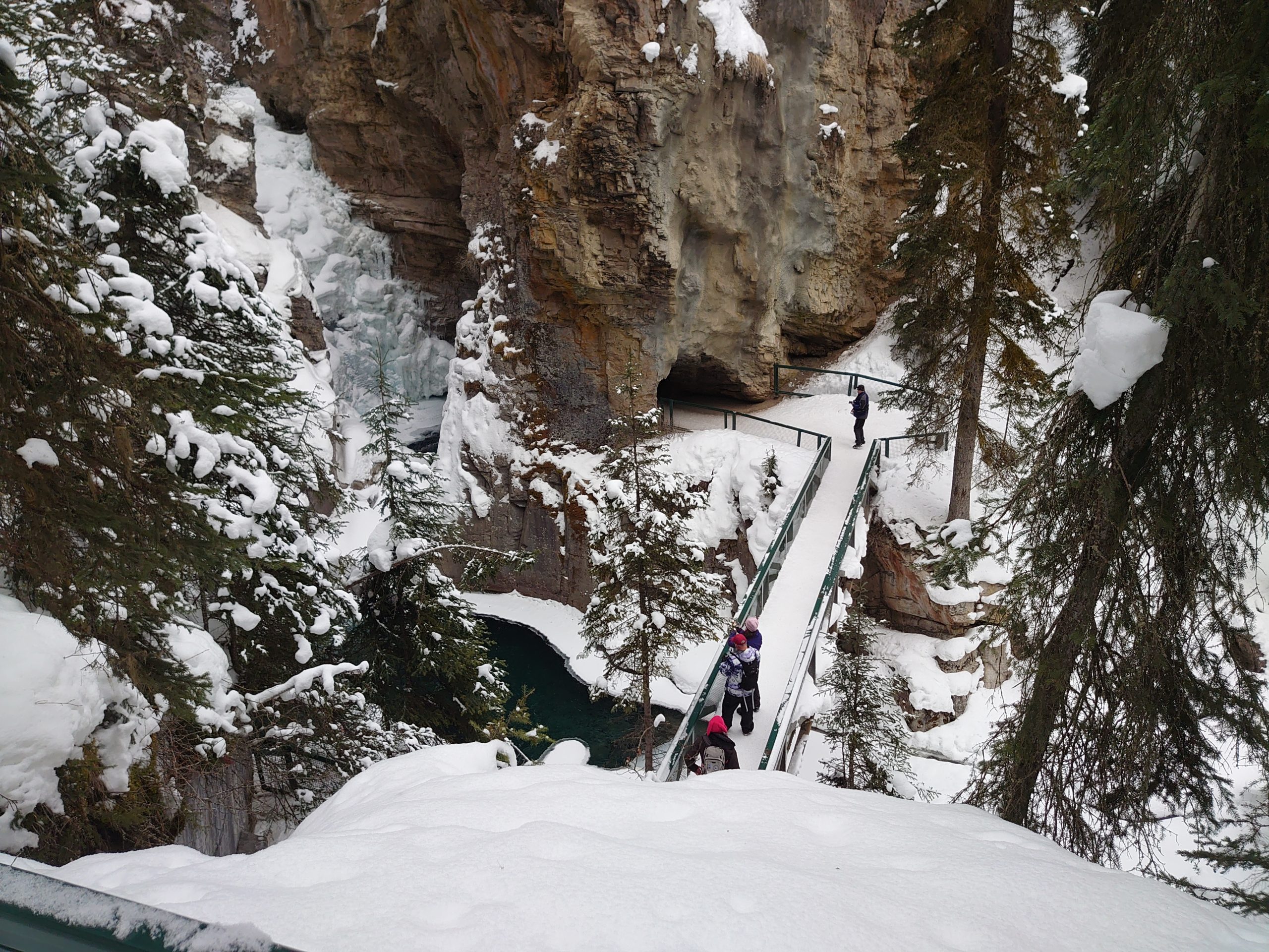 Comenzamos el día conociendo el Maligne Canyon, provistos de grampas en nuestro calzado caminamos dos horas subiendo, bajando y hasta caminando por el lecho congelado del río. Todo un desafío pero superamos la prueba!
