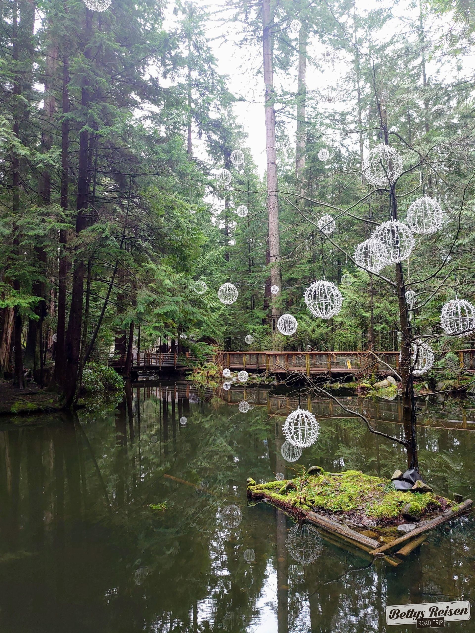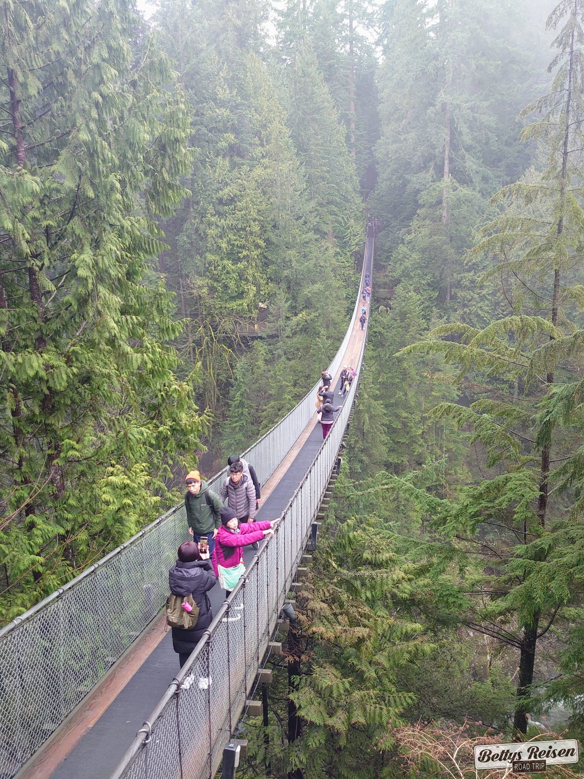 Llegamos al parque del Puente Capilano y sus hermosas pasarelas, la bruma seguía presente y le daba un toque especial. Advierten que algunos pasadizos no son aptos para las personas que sufren de vértigo pero a nosotros nos divirtió el recorrido.