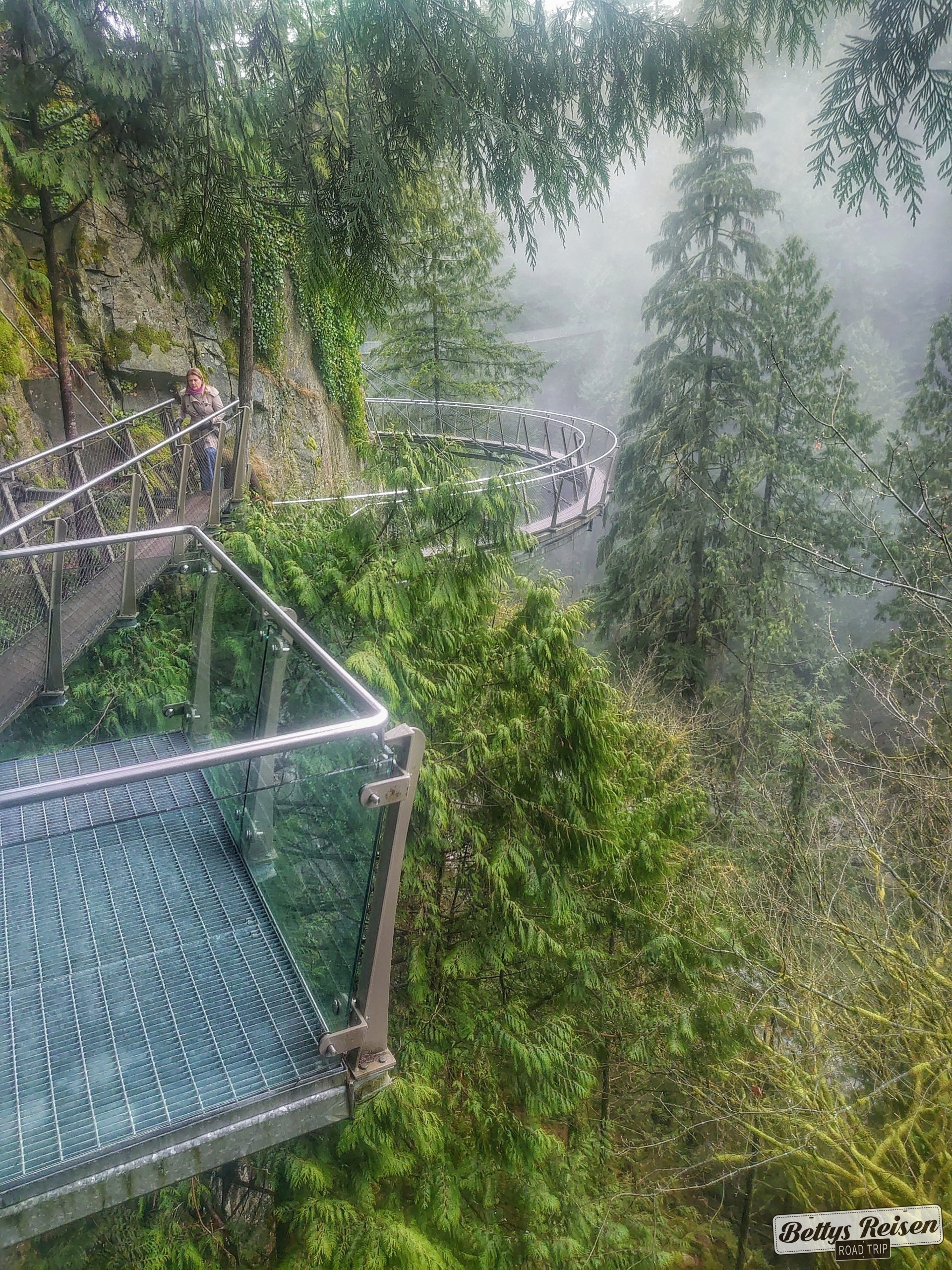 Para ir a Vancouver se continúa por la ruta 99 que en este trayecto lleva el nombre de Sea to Sky Hightway, por los hermosos paisajes que atraviesa, pero en todo el trayecto hubo niebla y no hemos podido apreciarla en su magnitud.