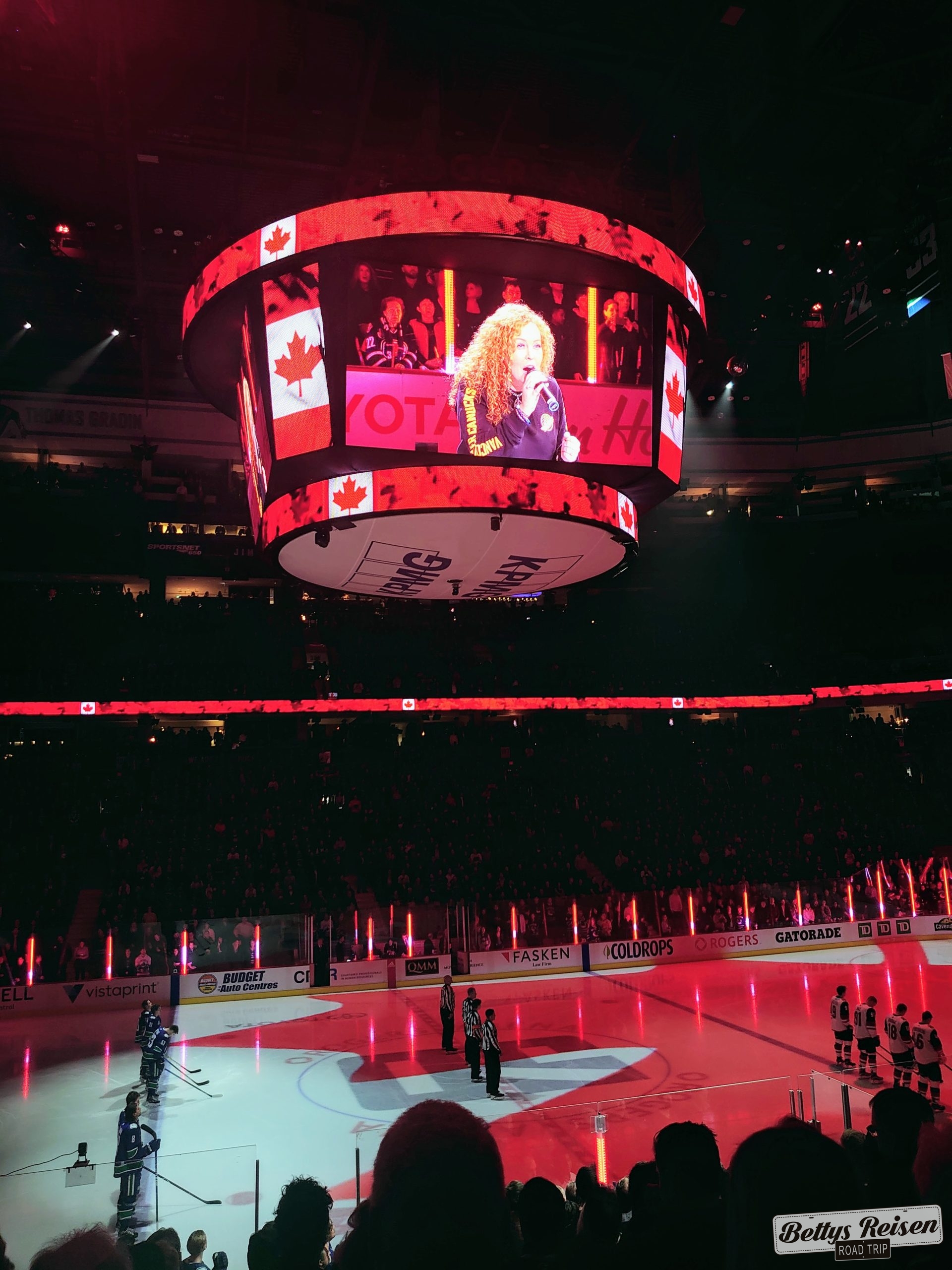 Caminamos hasta el estadio Roger Arena, para nosotros fue emocionante disfrutar en vivo de este espectáculo de jockey sobre hielo, lo malo fue que el equipo local perdió y no hubo festejos.