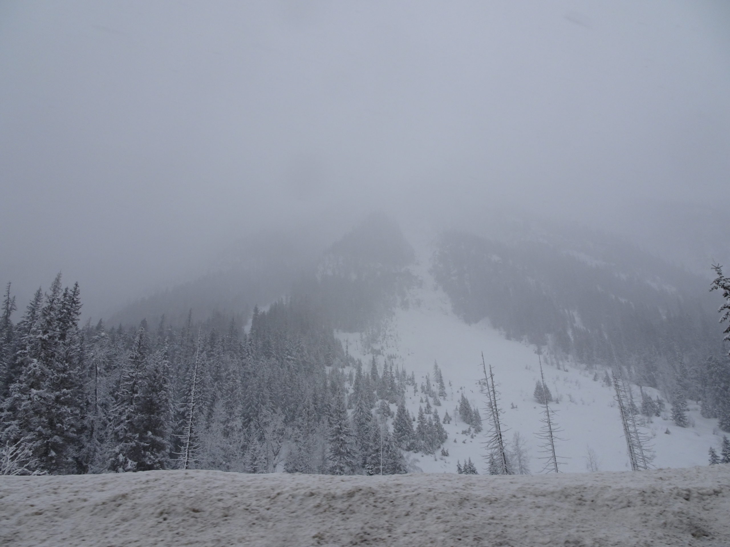 Por momentos caía nieve, en otros la bruma cubría todo, algo de lluvia también hubo, pero el paisaje blanco nunca nos abandonó.