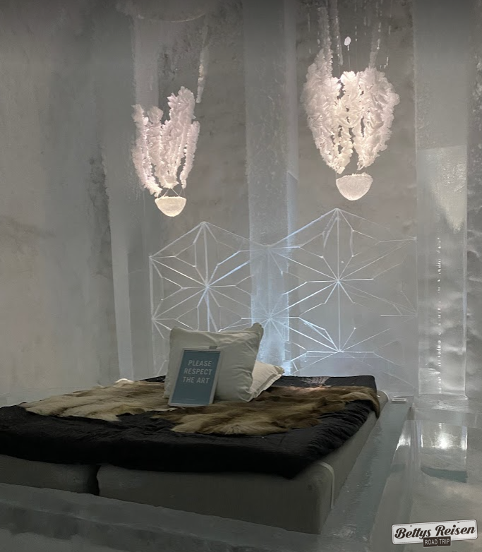 Pernoctamos a pocos kms de ahí, en una habitación cálida del Icehotel, que nos deslumbró a pesar que no es el primer sitio dónde vimos esculturas en hielo, pero esto supera todo sin dudas.