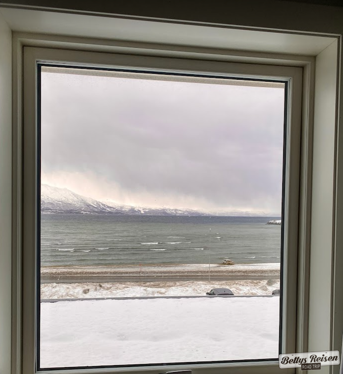 El hotel estaba a pocos kms de Narvik y la idea era llegar hasta ahí, pero como las condiciones no mejoraron nos recluimos en la habitación, por suerte esa ventana nos regalaba una vista maravillosa y nos dedicamos a definir dónde nos alojaríamos los días siguientes.
