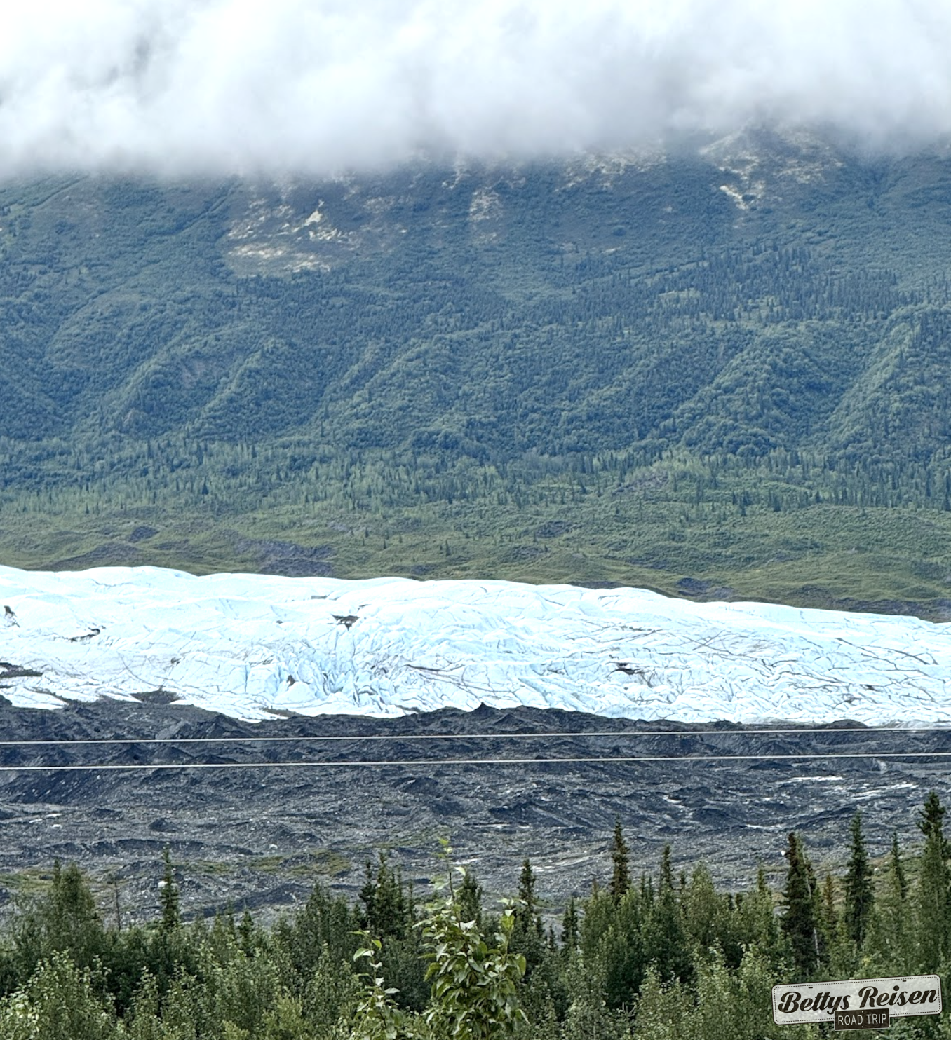 Durante varios kilometros la ruta nro 1 va bordeando el glaciar Matanuska, en realidad es un valle glaciar de 43 kilómetros de largo por 6,4 km de ancho, siendo el más grande accesible en coche en los Estados Unidos.