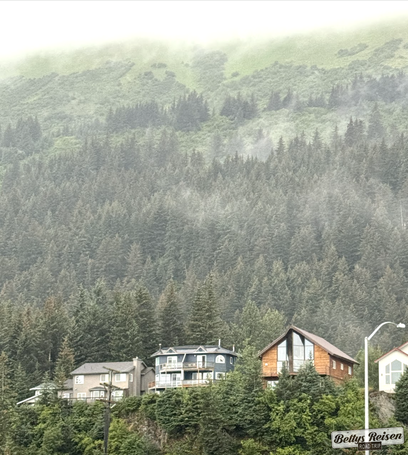 Cuando dejamos de la zona del glaciar, el cielo se abrió y comenzamos a ver muchas cabañas y hoteles, nos estábamos acercando a Anchorage y abundaban los alojamientos.