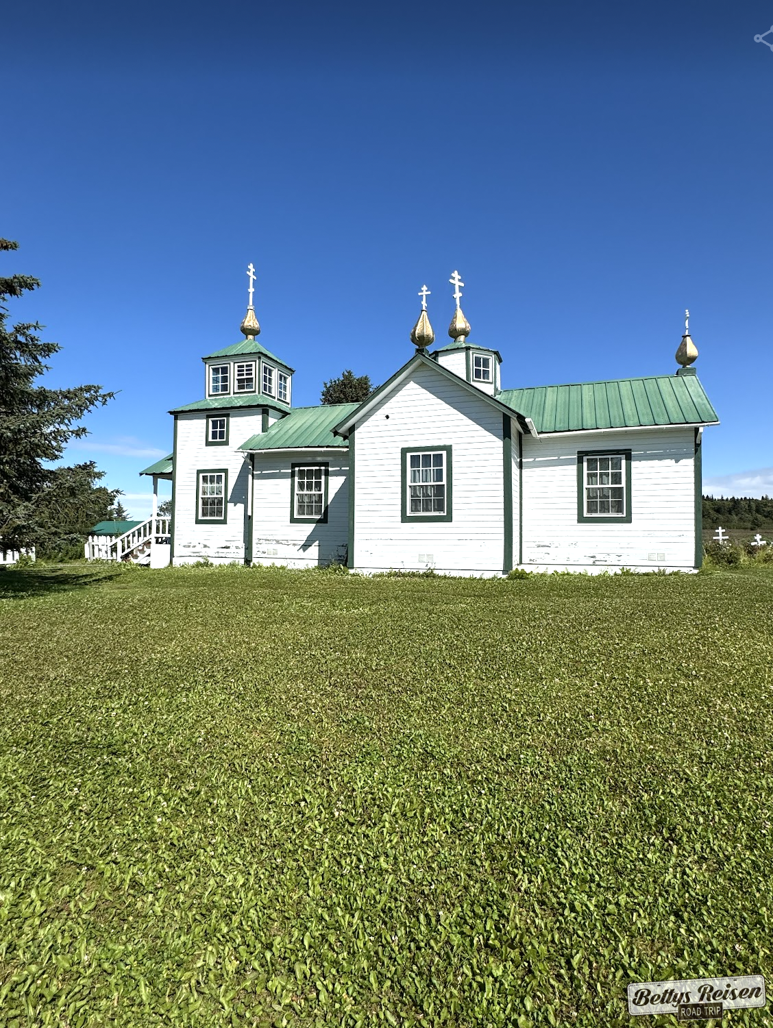 Su cementerio adyacente, lleno de flores silvestres en verano, refleja la herencia rusa de la región y es un punto de interés cultural. y fue incluida en el Registro Nacional de Lugares Históricos en 1978 por su importancia histórica y arquitectónica.