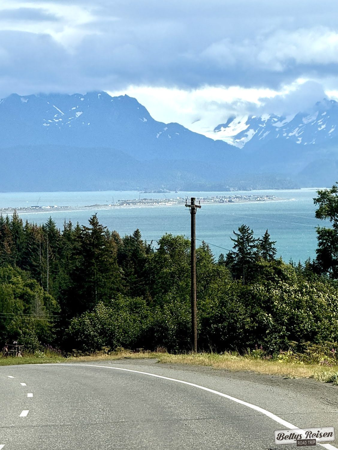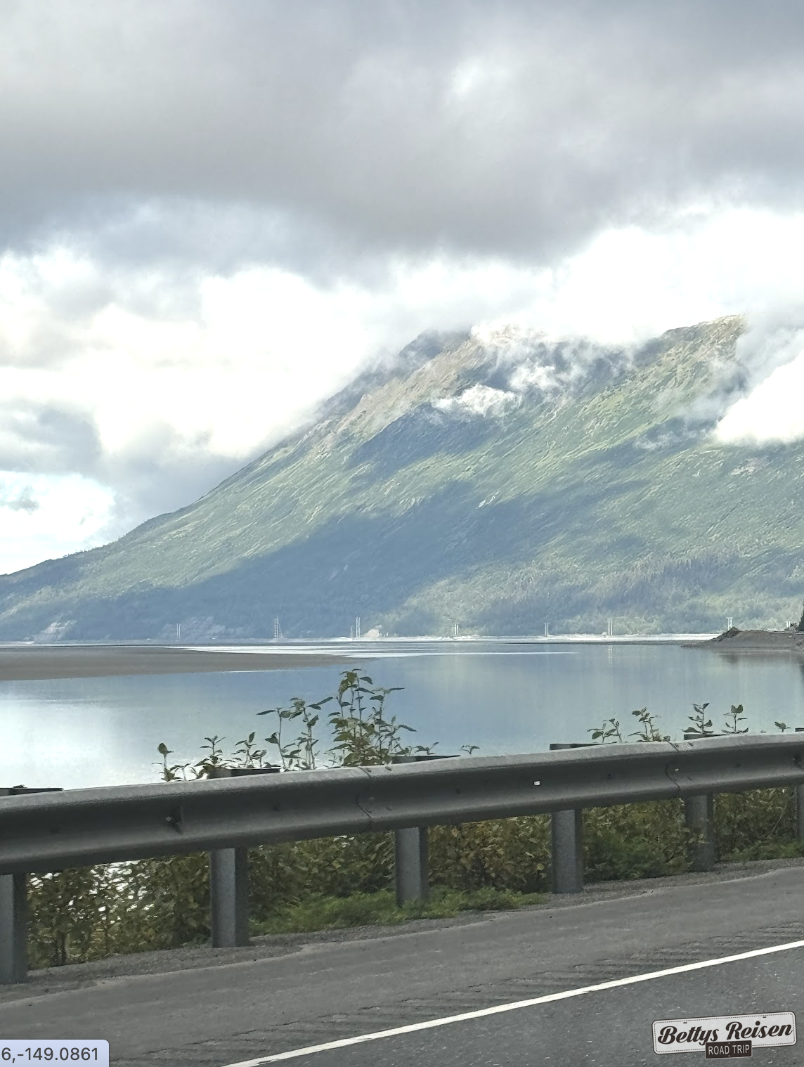 Pasamos por las afueras de la ciudad e hicimos el trayecto que muchos mencionan como el mas lindo de Alaska, se trata de la autopista Seward que transcurre ente base de las montañas Chugach y la costa del brazo Turnagain. Me decepcionó… creo que solo se aprecia a determinada hora cuando la luz solar lo ilumina de una manera determinada.