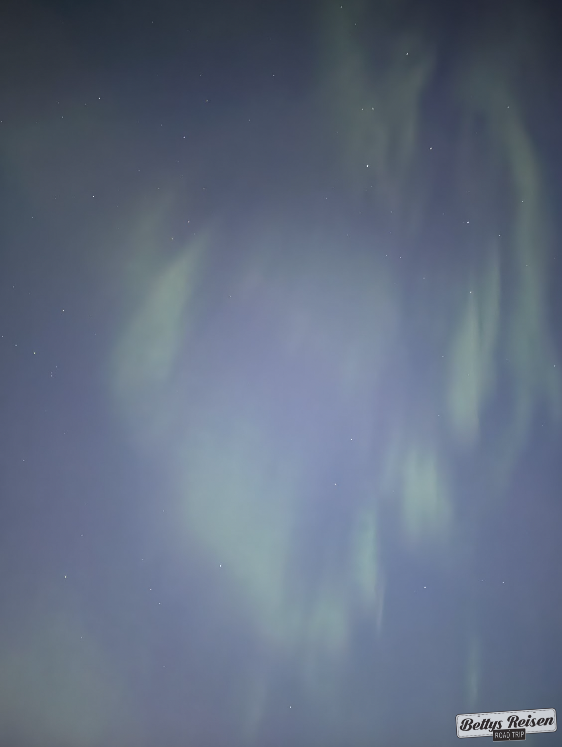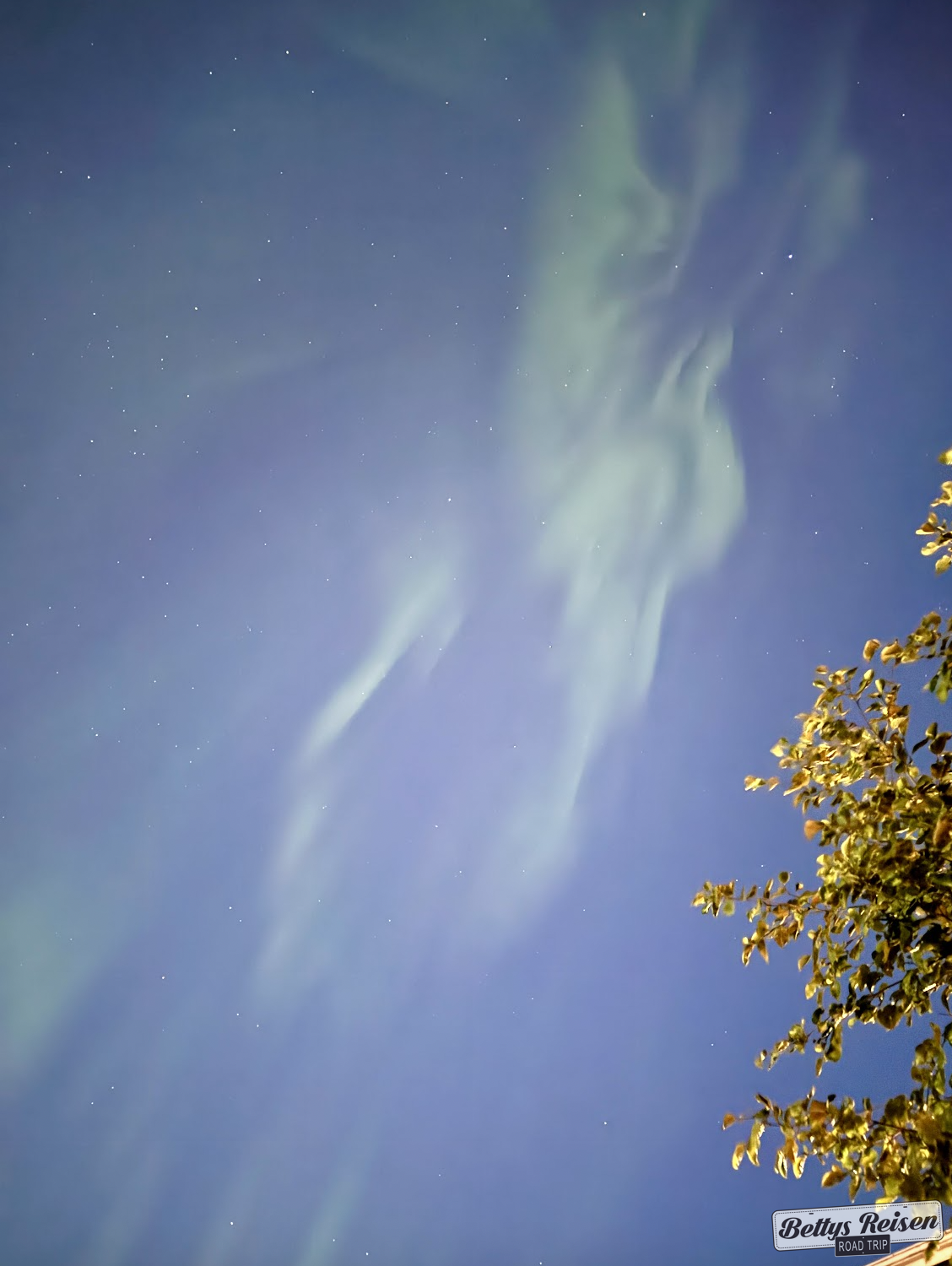 Supe que el sol estaba con una inusual actividad que generaría auroras boreales y, pese a que estábamos en agosto con sus extensos días, salí a caminar a la medianoche buscándolas y pude divisarlas. No eran muy intensas, pero me siento afortunada por verlas en verano y por octava vez en mi vida!